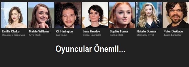 Yabancı dizilerin büyük bölümünde sinema dünyasından aşina olduğumuz oyuncular karşımıza çıkmaktadır. Oynadığı yapımlardan hoşlandığınız oyuncuların dizilerini tercih ederek dizi konusuna yumuşak bir geçiş yapabilirsiniz. Dizilerdeki başrol oyuncularıyla birlikte öne çıkan kadro hakkında bilgi sahibi olmanız diziye adapte olmanızı kolaylaştıracaktır.
